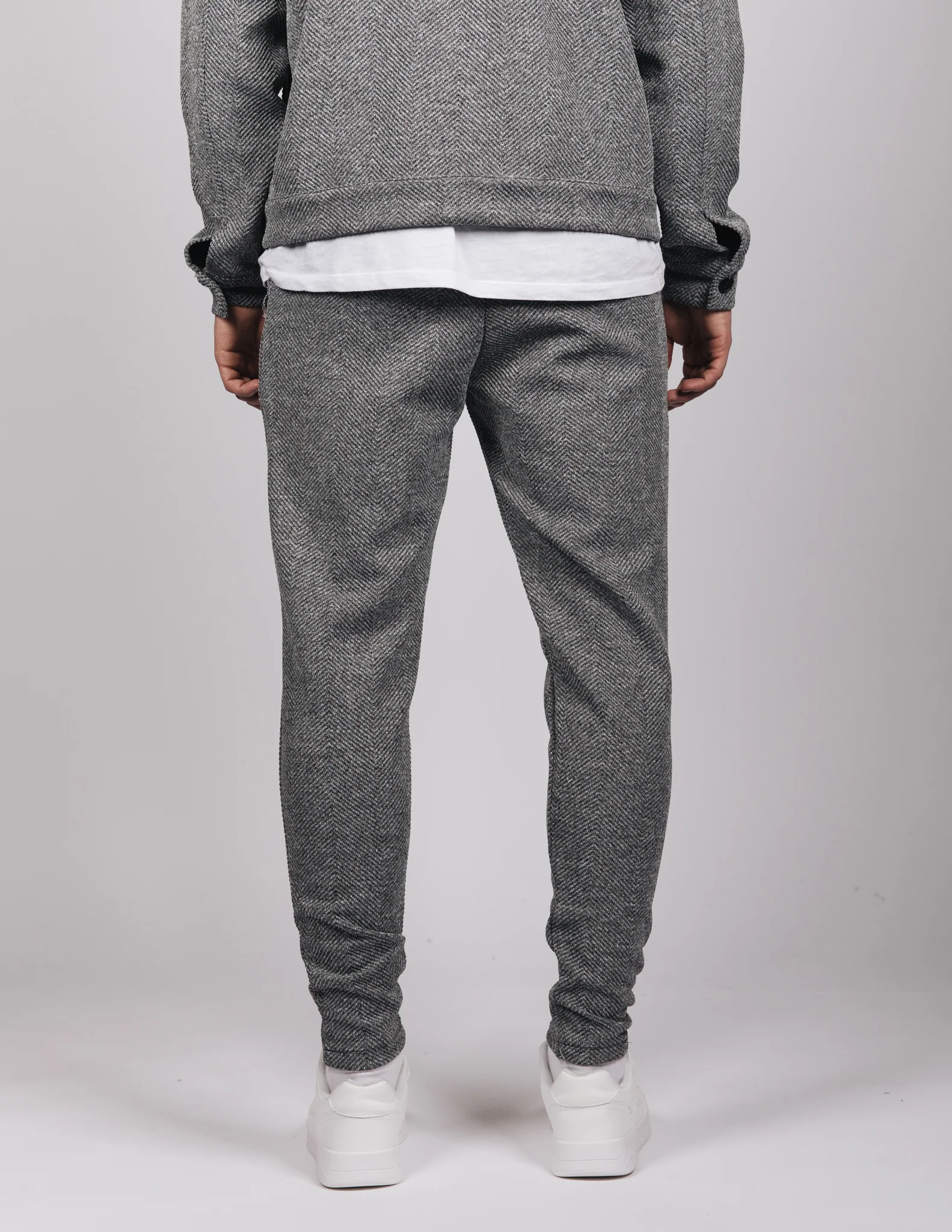 Dark Grey Herringbone Casual Trousers