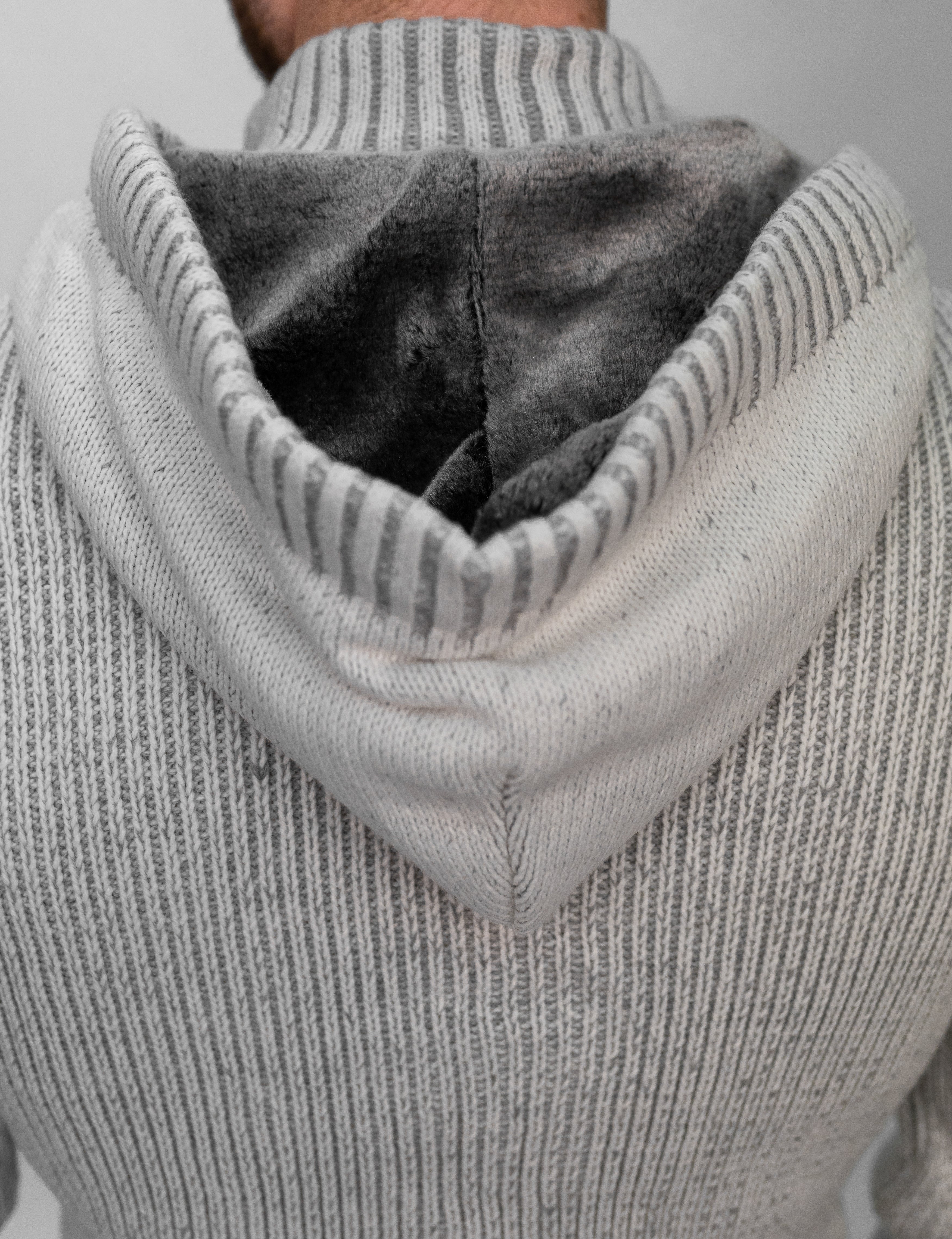 Grey Button Buckle Detail Hooded Knitted Sweater