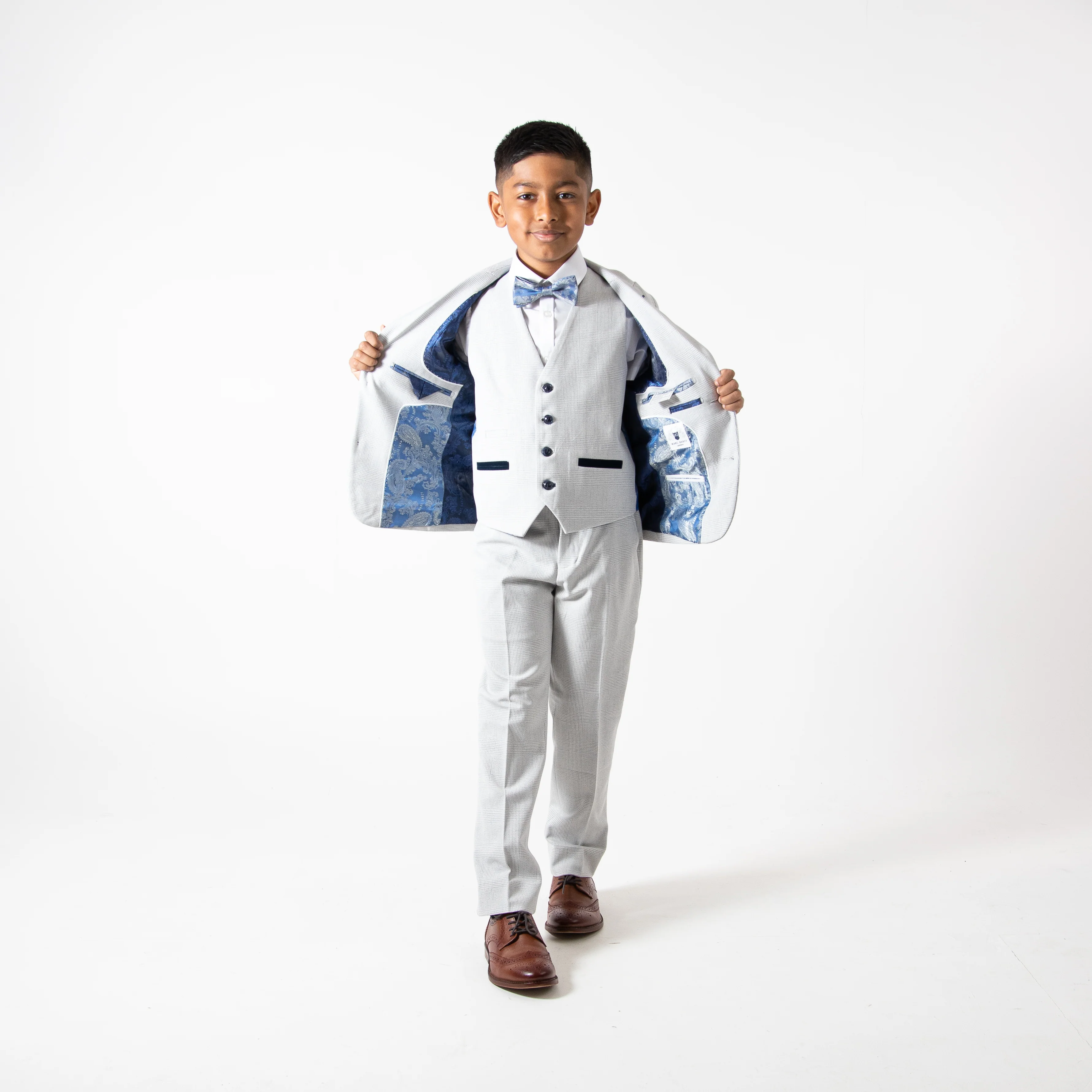 - Suit: The Bromley Stone Children's suit is designed to exude timeless elegance, featuring a classic fit that is perfect for formal occasions and special events.