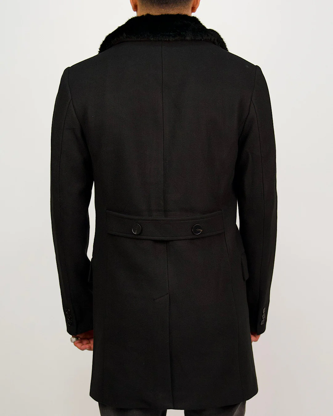Single Breasted Overcoat With Removeable Fur Collar Black
