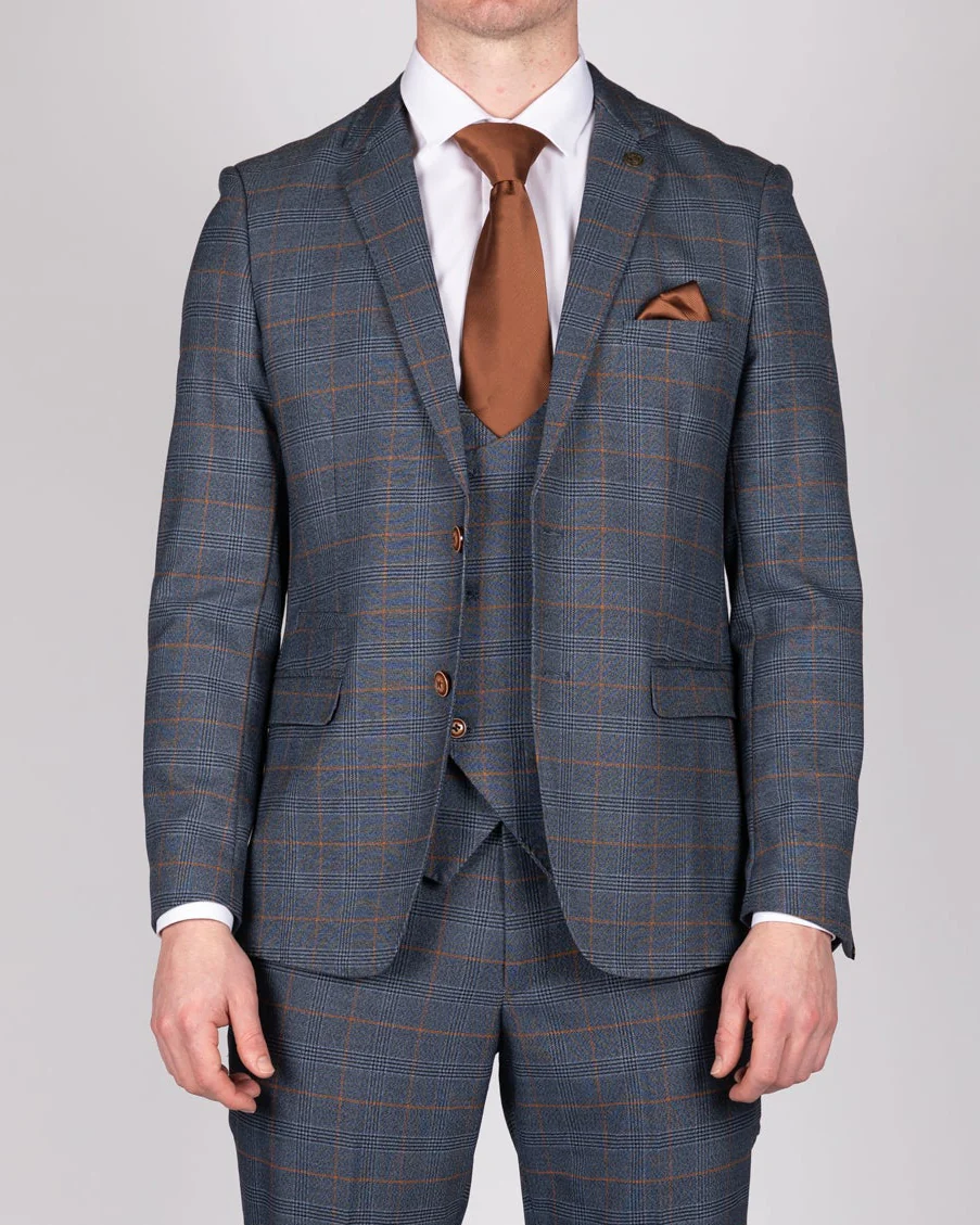 Whether you’re attending summer events or enjoying a beer garden gathering styled casually, the Jenson Sky Blue Check Suit is your go-to choice.