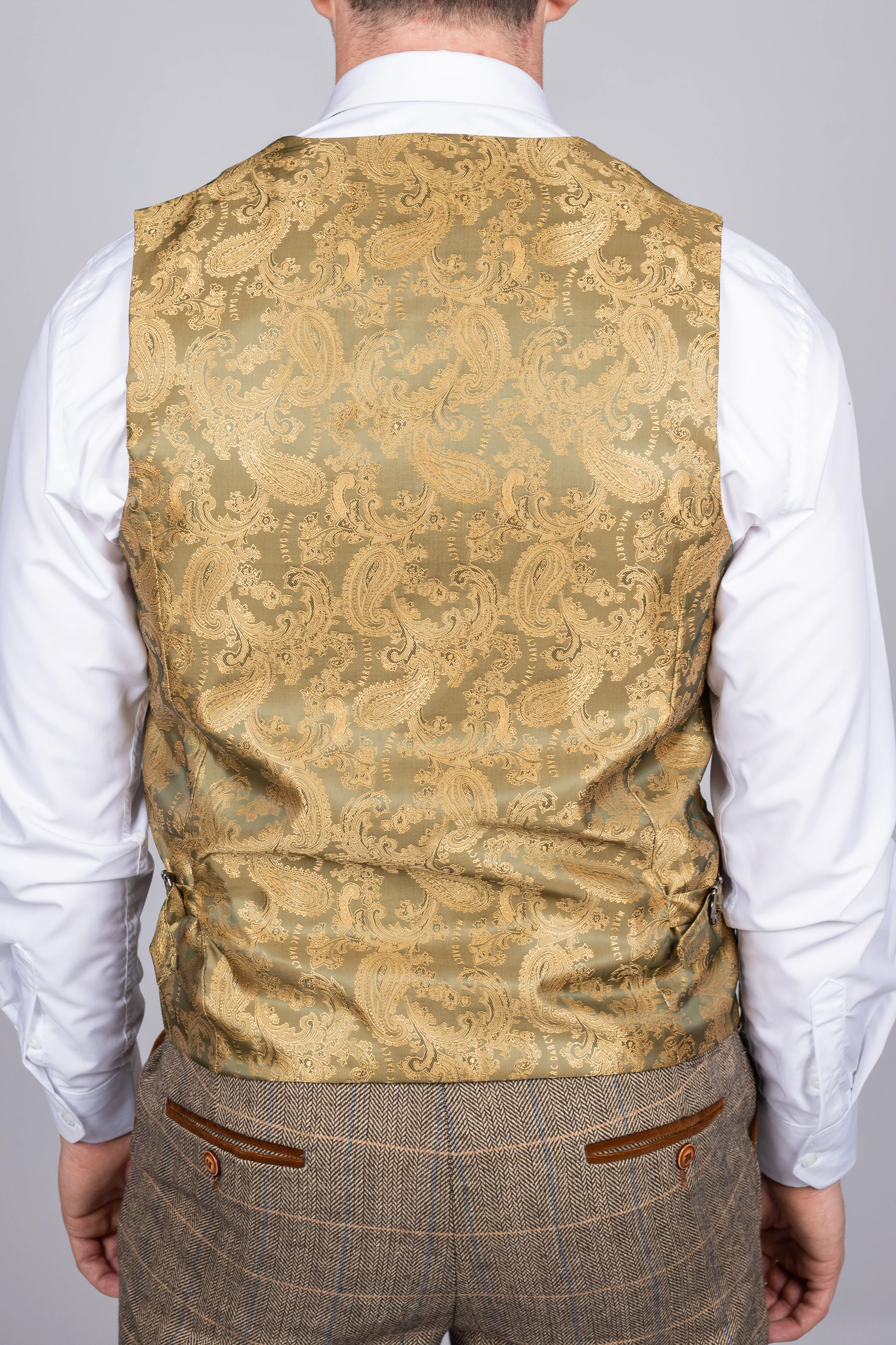 Ted - Tan Tweed Check Double Breasted Waistcoat